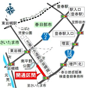本日14時、主要地方道「野田岩槻線」の春日部市増戸地内が開通!